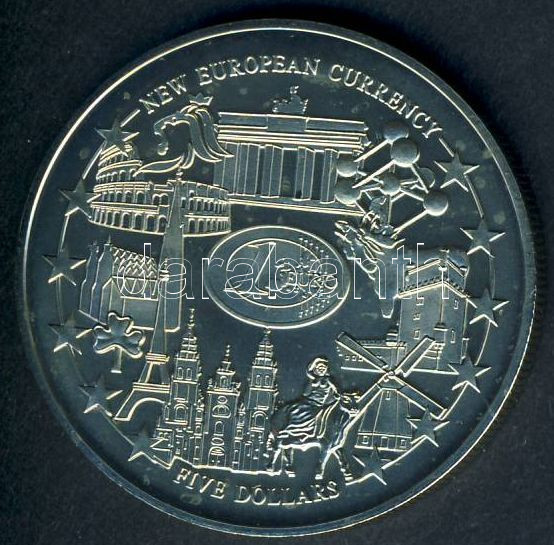 Leírás: Libéria 2002. 5$ "Az euro bevezetése" T:1 tanúsítvánnyal!