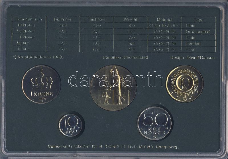 Leírás: Norvégia 1989. 10ö-10Kr 5db klf forgalmi érme eredeti plasztiktokban, tanúsítvánnyal T:BU