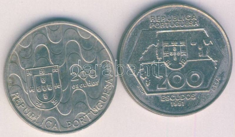 Leírás: Portugália 1991. 200Esc "Hajózás a Nyugat felé" T:BU + 1992. 200Esc "EU-elnöklés" T:2