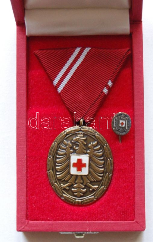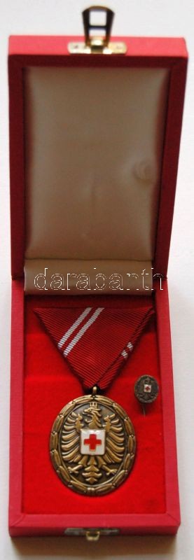 Leírás: Ausztria DN. Vöröskereszt kitüntetés kis jelvénnyel, eredeti adományozói dísztokban! T:1