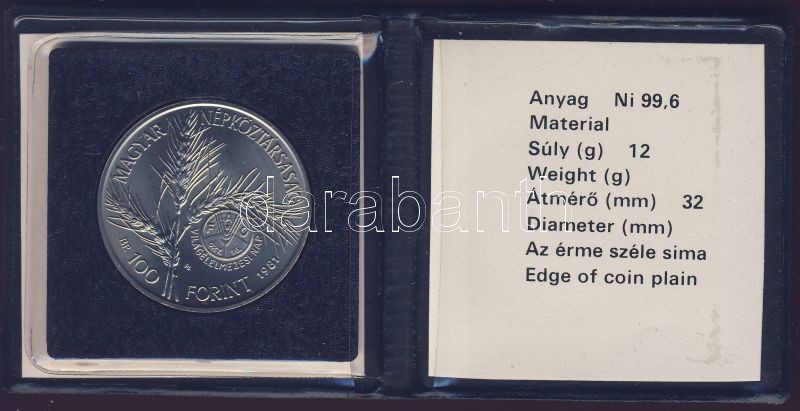 Leírás: 1981. 100Ft "FAO" T:1 eredeti tokban!
