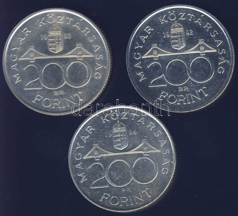 Leírás: 1992-94. 200Ft Ag (3x) "Deák" + "MNB" T:1,2