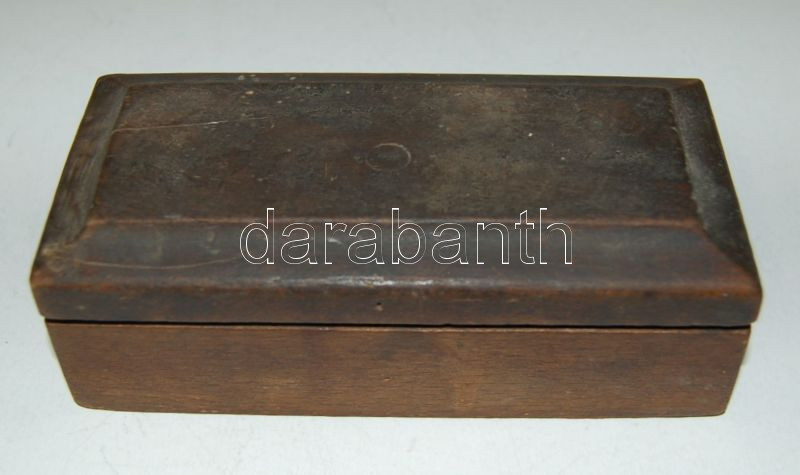 Leírás: 8 darabos régi súlykészlet eredeti fadobozában (5 g-20 dkg)