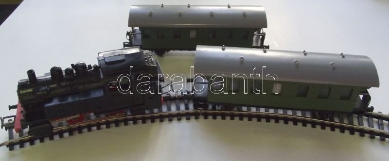 Leírás: PIKO modell-vasút tétel: Mozdony, két vagon, sok sín, mind hibátlan állapotban / Model-train set in good shape