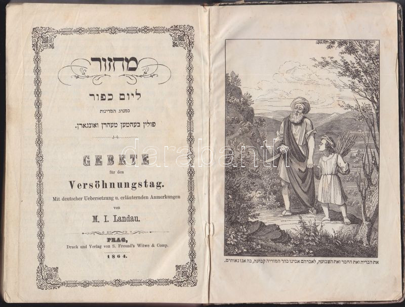 1864. Prága-"Gebete für den Versöhnungstag": Héber-német kétnyelvű imakönyv, az első lapon metszettel (kopott borítás)/ 1864. Prague: Hebrew-German bilingual prayer-book with engraving on the first page (worn cover)