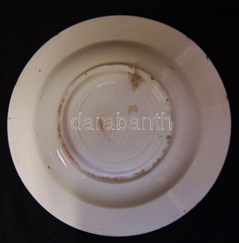 Leírás: cca 1900 Virágokkal díszített Hollóháza kerámia falitányér d: 24cm