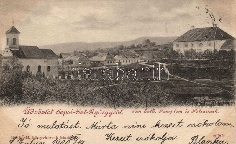 Leírás: Sepsiszentgyörgy with Catholic church and post office (fl)