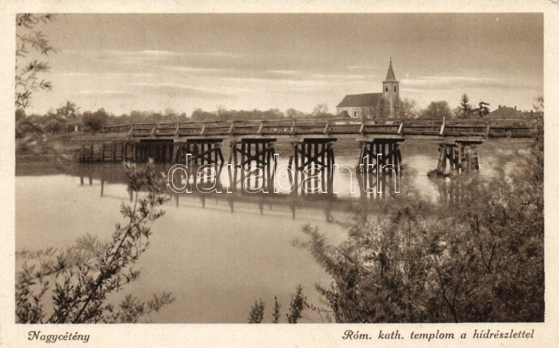 Nagycétény bridge and catholic church https://www.darabanth.com/hu/144-Gyorsarveres/144.0/Kepeslapok/Felvidek~1000008/Nagyceteny-bridge-and-catholic-church~II429247