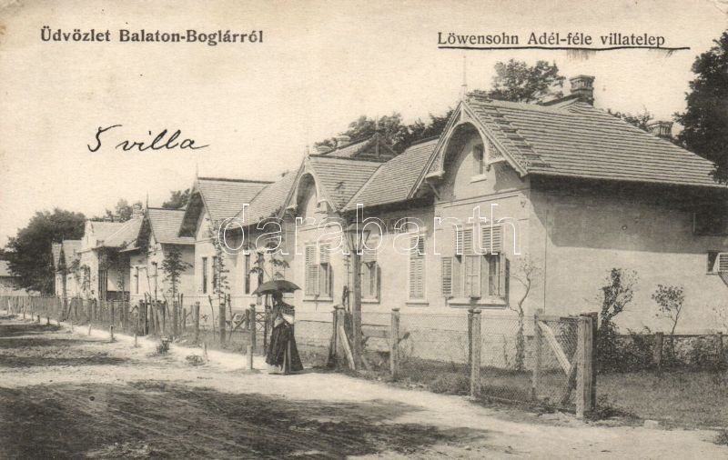 Balatonboglár Löwensohn Adél-féle villatelep https://www.darabanth.com/hu/144-Gyorsarveres/144.0/Kepeslapok/Magyarorszag~1000006/Balatonboglar-Lowensohn-Adel-fele-villatelep~II428843
