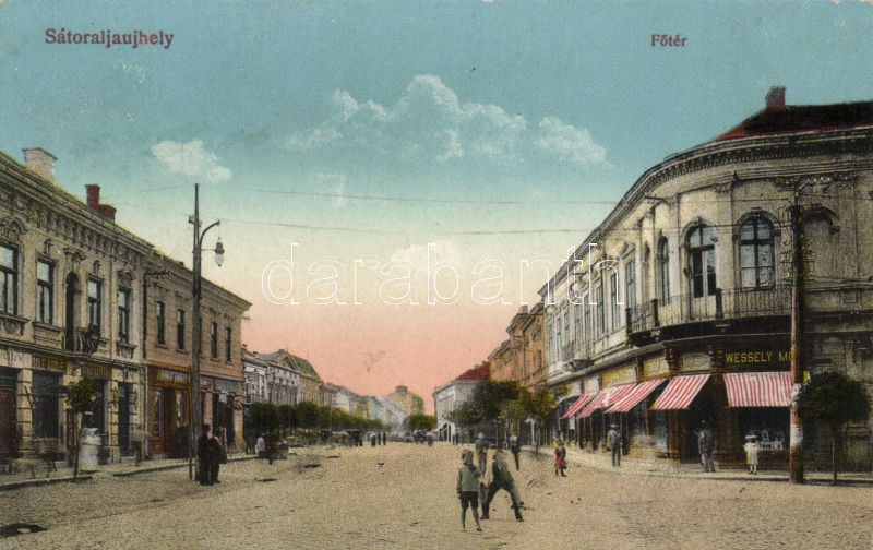 Sátoraljaújhely Főtér Wessely Mór ruhaáruházával https://www.darabanth.com/hu/144-Gyorsarveres/144.0/Kepeslapok/Magyarorszag~1000006/Satoraljaujhely-Foter-Wessely-Mor-ruhaaruhazaval~II430573