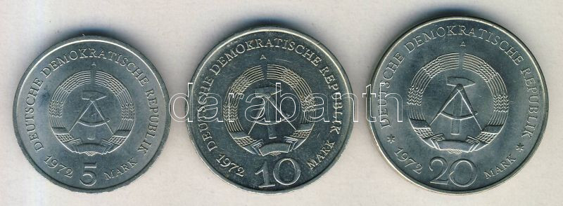Leírás: NDK 1972. 5M "Meissen" + 10M "Buchenwald" + 20M "Wilhelm Pieck" T:2