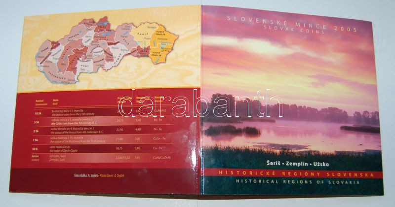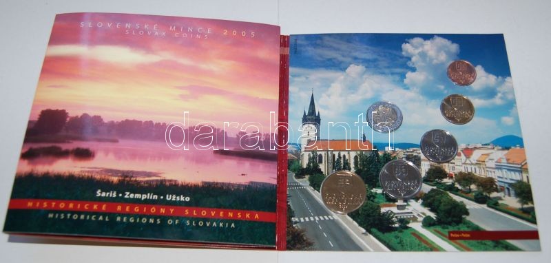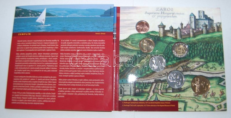 Leírás: Szlovákia 2005. 50h-10K 5db klf érme + Zaros, Saris emlékérem "Szlovákia Történelmi Vidékei" bemutató szettben T:BU