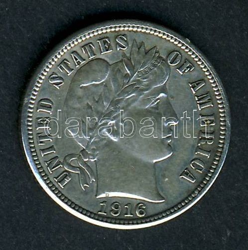 USA 1916. "Barber Dime" Ag T:2+ https://www.darabanth.com/hu/144-Gyorsarveres/144.0/Numizmatika/Kulfoldi-fem-es-ezustpenzek~1000093/USA-1916-Barber-Dime-Ag-T2plus~II428510