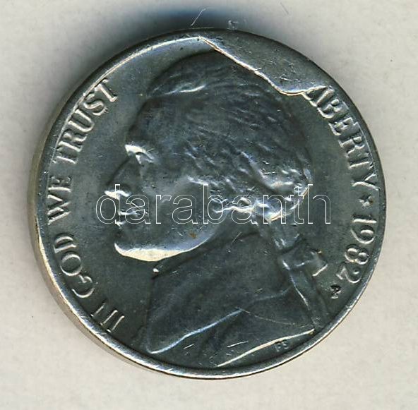 USA 1982P 5c "Monticello" hibás veret! T:2- https://www.darabanth.com/hu/144-Gyorsarveres/144.0/Numizmatika/Kulfoldi-fem-es-ezustpenzek~1000093/USA-1982P-5c-Monticello-hibas-veret-T2-~II427995