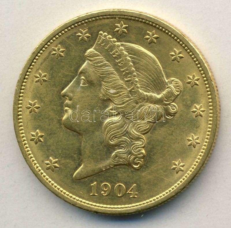 USA 1904. 20$ Au "Liberty" 33,43g T:1 apró ph. https://www.darabanth.com/hu/144-Gyorsarveres/144.0/Numizmatika/Magyar-es-kulfoldi-arany-penzek~1000098/USA-1904-20USD-Au-Liberty-33-43g-T1-apro-ph~II429318