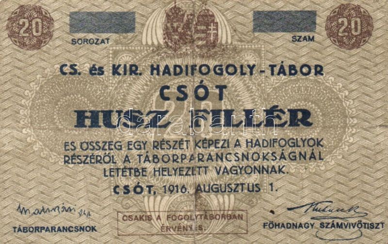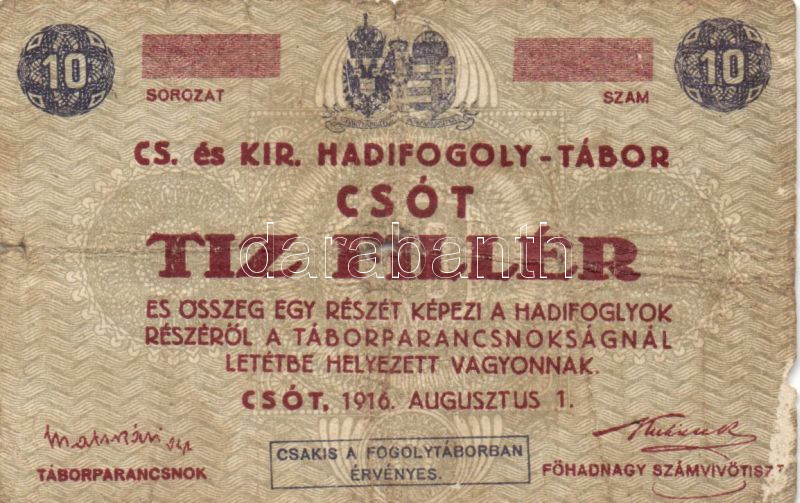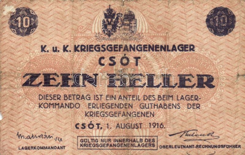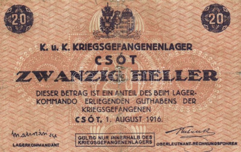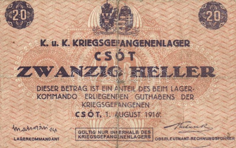 Leírás: Csót/hadifogolytábor 1916. augusztus 1. 10f + 20f (2x) számozás nélkül T:III,III-