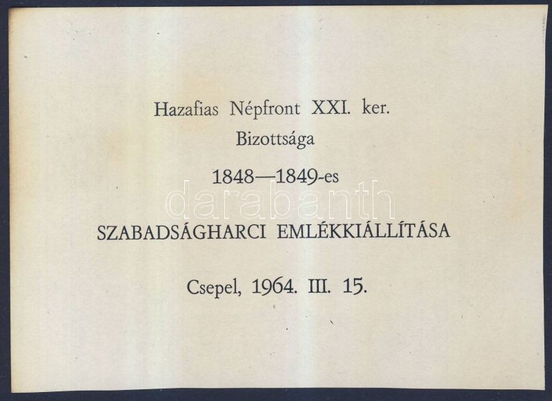 1849. 10Ft "Kincstári utalvány" 1964-es utánnyomata "Hazafias Népfront... https://www.darabanth.com/hu/144-Gyorsarveres/144.0/Numizmatika/Magyar-es-magyar-vonatkozasu-bankjegyek~1000088/1849-10Ft-Kincstari-utalvany-1964-es-utannyomata-Hazafias-Nepfront-XXI-ker-Bizottsaga-184~II430112
