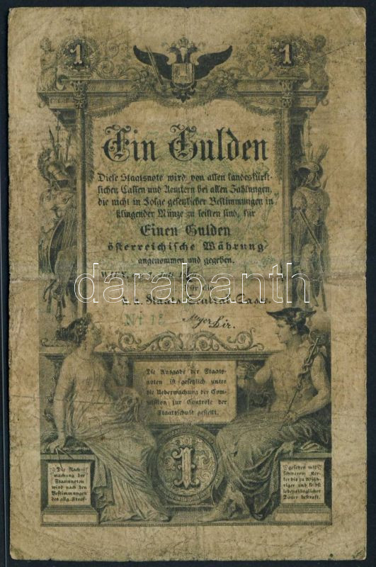 1866. 1G K.K.Staats-Central-Cassa T:IV https://www.darabanth.com/hu/144-Gyorsarveres/144.0/Numizmatika/Magyar-es-magyar-vonatkozasu-bankjegyek~1000088/1866-1G-KKStaats-Central-Cassa-TIV~II429696