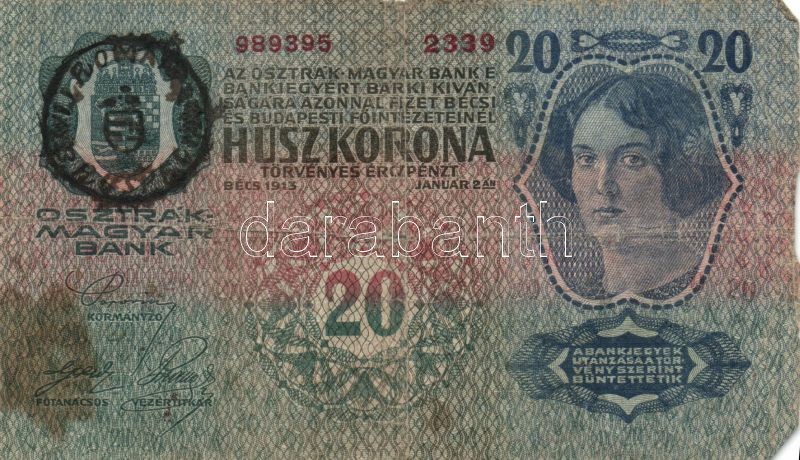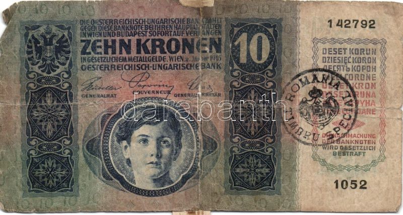 1904. 10K román felülbélyegzéssel + 1913. 20K (4x) mind román felülbél... https://www.darabanth.com/hu/144-Gyorsarveres/144.0/Numizmatika/Magyar-es-magyar-vonatkozasu-bankjegyek~1000088/1904-10K-roman-felulbelyegzessel-plus-1913-20K-4x-mind-roman-felulbelyegzessel-1915-10K-3~II430466