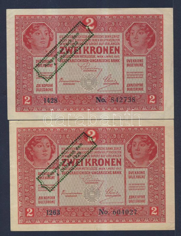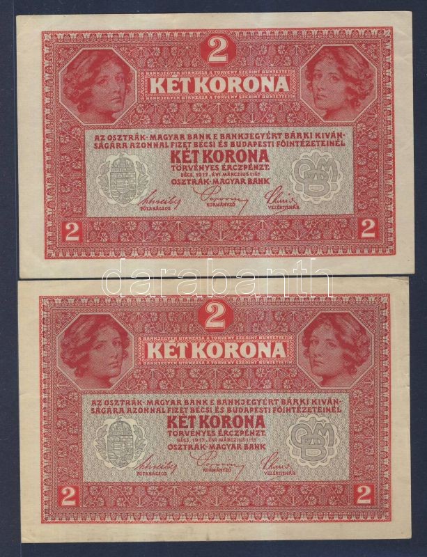 1917. 2K (2x) osztrák felülbélyegzéssel T:II,II-(apró szakadás) https://www.darabanth.com/hu/144-Gyorsarveres/144.0/Numizmatika/Magyar-es-magyar-vonatkozasu-bankjegyek~1000088/1917-2K-2x-osztrak-felulbelyegzessel-TII-II-apro-szakadas~II430453
