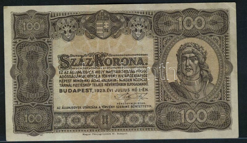 Leírás: 1923. 100K nyomdahely jelöléssel T:II+