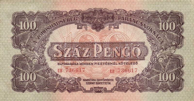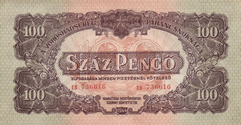 Leírás: 1944. 100P "V.H." (2x) egymásutáni sorszámmal T:I