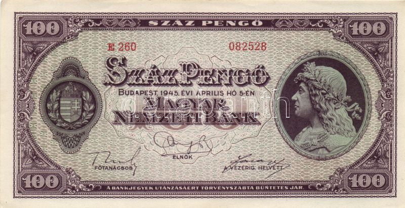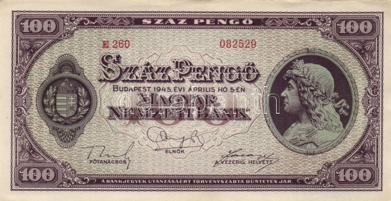 Leírás: 1945. 100P (2x) egymásutáni sorszámmal T:I-