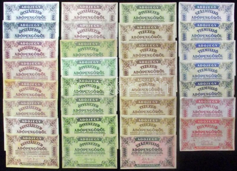 Leírás: 1946. 10.000AP-100.000.000AP (31x) eltérő színváltozatokkal, vízjeles illetve sorszámozott és sorszám nélküli darabokkal! T:vegyes