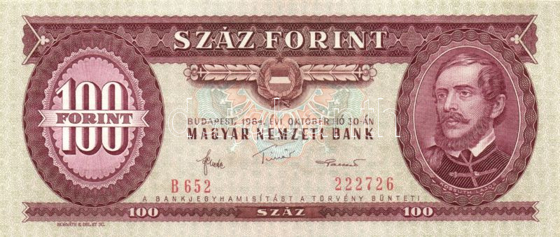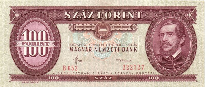 Leírás: 1984. 100Ft (3x) egymásutáni sorszámmal és fordított hátlapi alapnyomattal! T:I