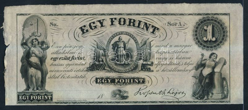 Leírás: Emigrációs "Kossuth-bankó" 18.. 1Ft "Sor A." T:II-(kis szakadás)