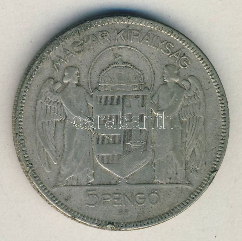 1930. 5P Ag "Horthy jobbra" T:3 ph. https://www.darabanth.com/hu/144-Gyorsarveres/144.0/Numizmatika/Magyar-fem-es-ezustpenzek~1000089/1930-5P-Ag-Horthy-jobbra-T3-ph~II429600