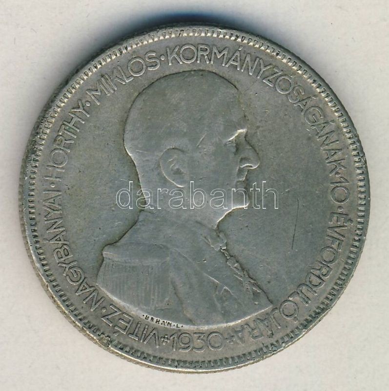 Leírás: 1930. 5P Ag "Horthy jobbra" T:3 ph.