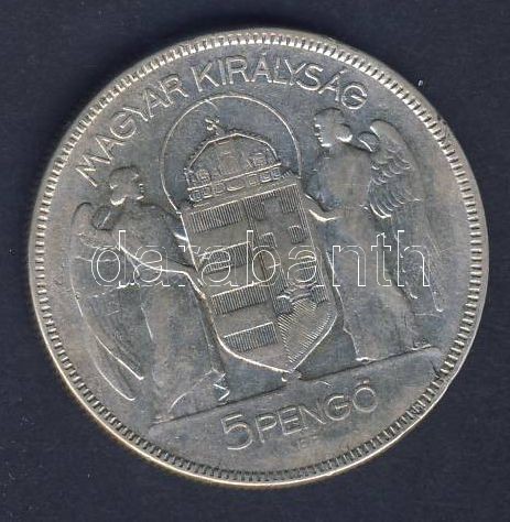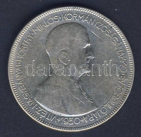 Leírás: 1930. 5P Ag "Horthy jobbra" T:3