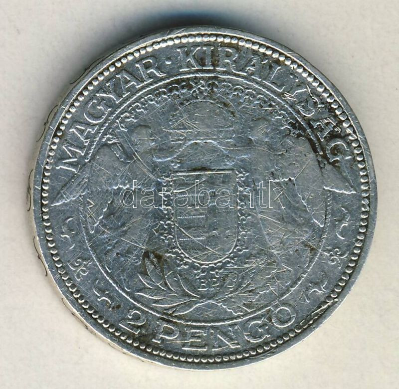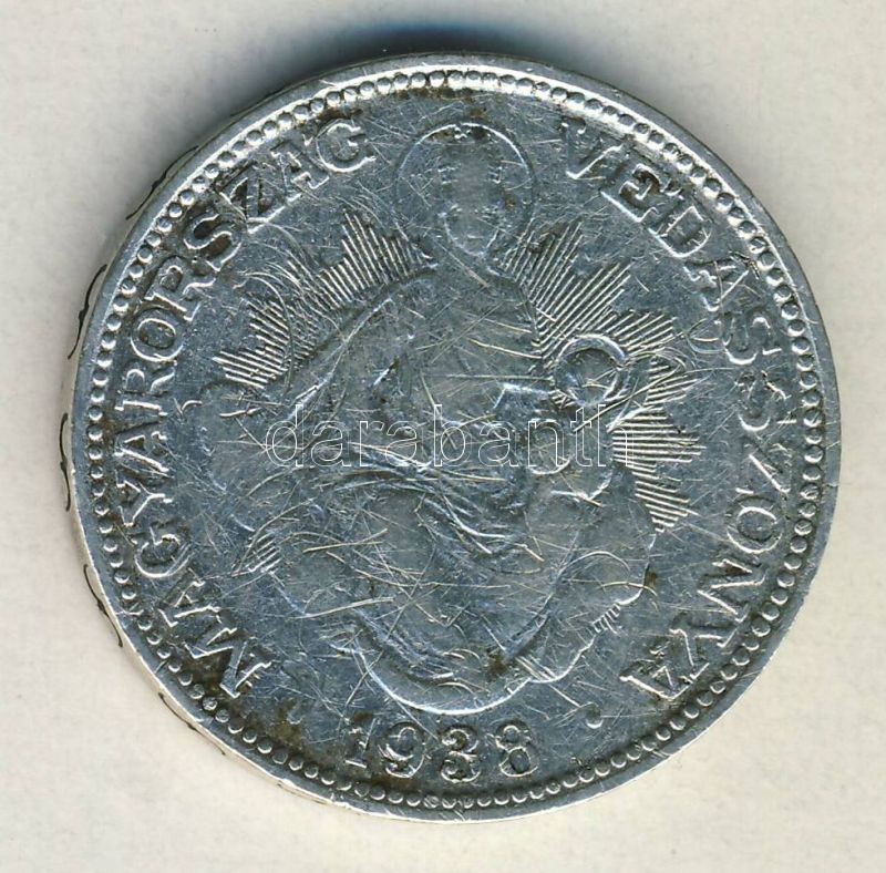 1938. 2P Ag "Madonna" T:3 k. ph. https://www.darabanth.com/hu/144-Gyorsarveres/144.0/Numizmatika/Magyar-fem-es-ezustpenzek~1000089/1938-2P-Ag-Madonna-T3-k-ph~II430093