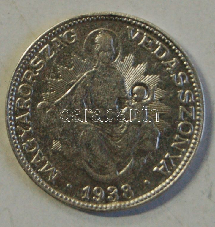 1938. 2P Ag "Madonna" T:3+/3 ph. https://www.darabanth.com/hu/144-Gyorsarveres/144.0/Numizmatika/Magyar-fem-es-ezustpenzek~1000089/1938-2P-Ag-Madonna-T3plus3-ph~II430057