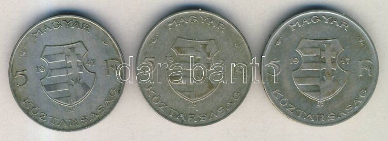 Leírás: 1947. 5Ft Ag (3x) "Kossuth" T:3