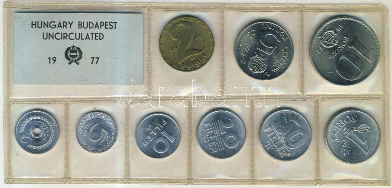 1977. 2f-10Ft 9db klf forgalmi sor szettben T:1 https://www.darabanth.com/hu/144-Gyorsarveres/144.0/Numizmatika/Magyar-fem-es-ezustpenzek~1000089/1977-2f-10Ft-9db-klf-forgalmi-sor-szettben-T1~II427627