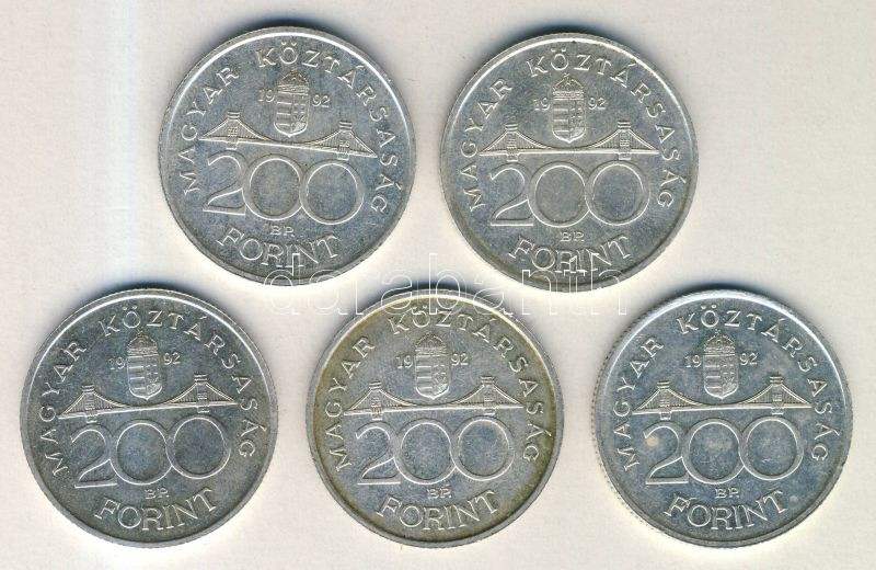 Leírás: 1992. 200Ft Ag "MNB" (5x) T:2 kis ph.