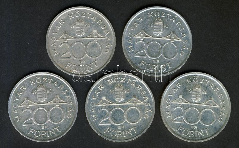 Leírás: 1992. 200Ft Ag "MNB" (5x) T:2+,2 kis ph.