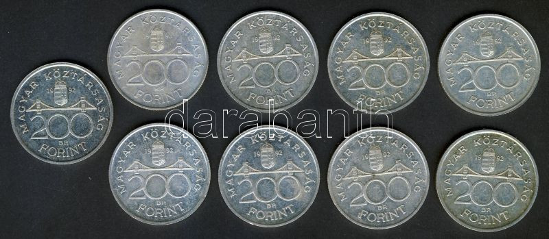 Leírás: 1992-93. 200Ft Ag "MNB" (9x) T:2+,2 kis ph.