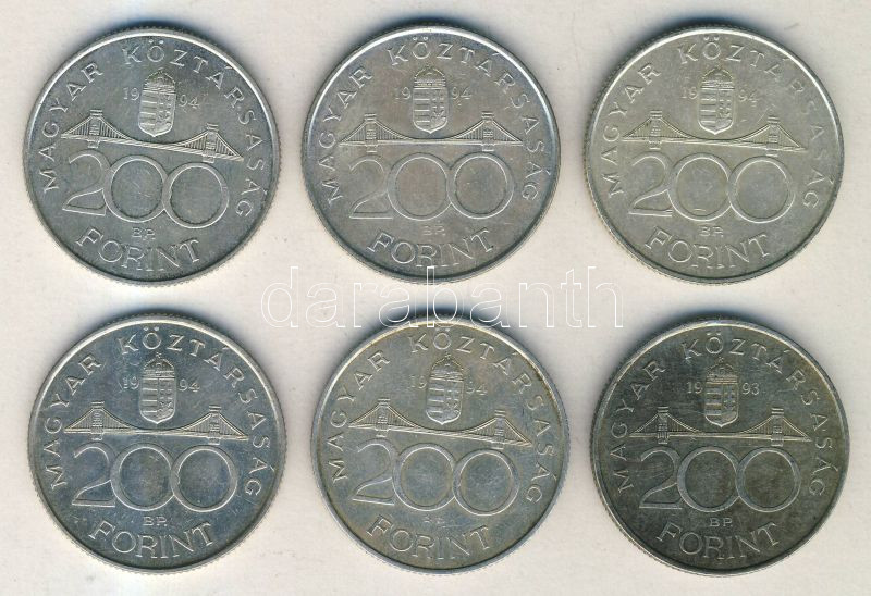 Leírás: 1993-94. 200Ft Ag "Deák" és "MNB" (6x) T:2,2-
