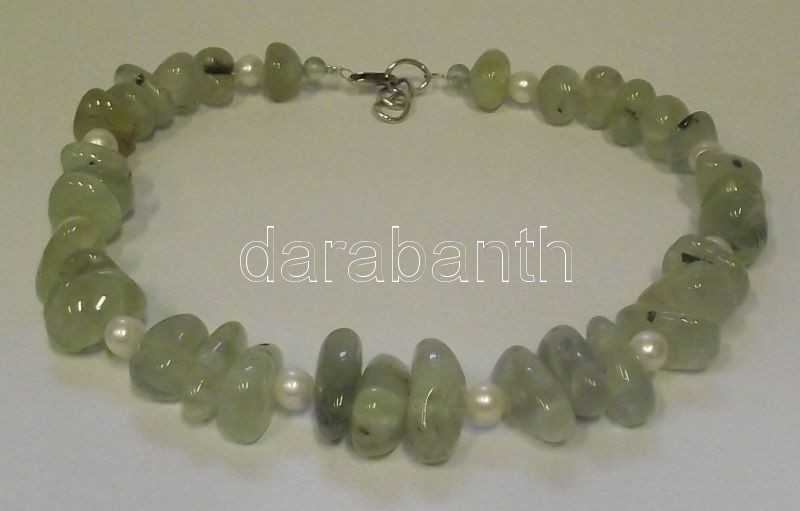 Leírás: Rutilkvarc és tenyészett gyöngy nyaklánc ezüst (Ag) szerelékkel