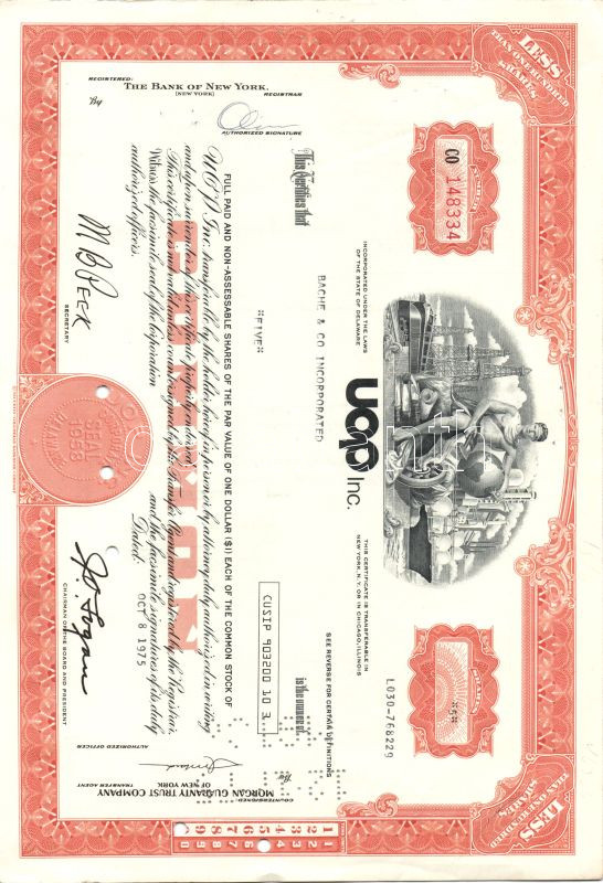 Leírás: USA / Delaware 1975. Universal Oil Products vállalat részvénye T:I