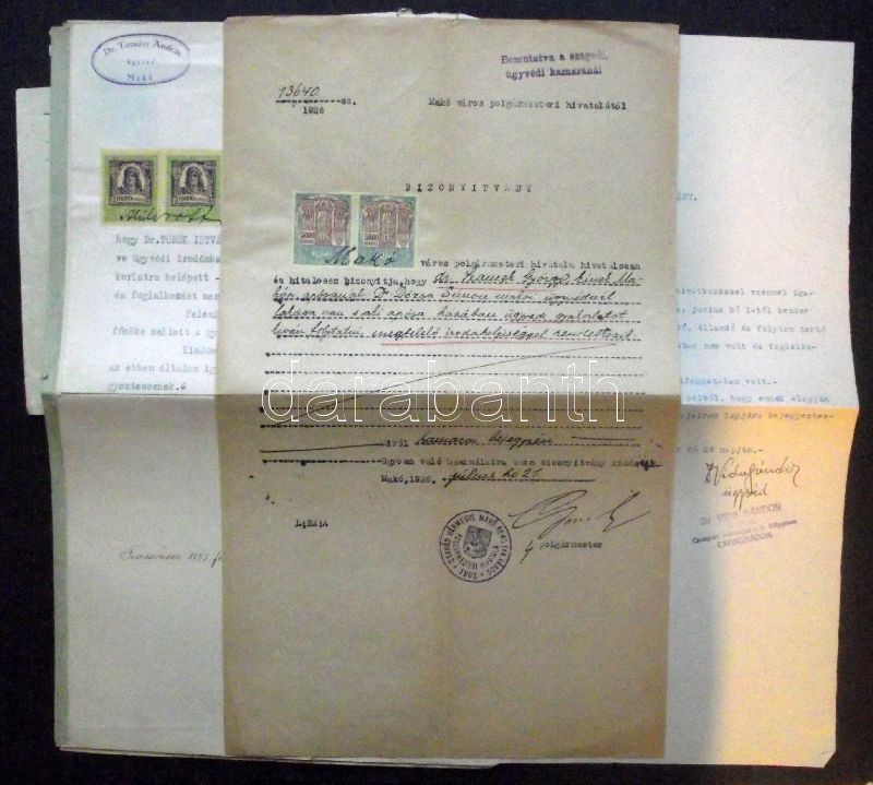 Leírás: 9 db klf régi okmány különleges okmánybélyegekkel
