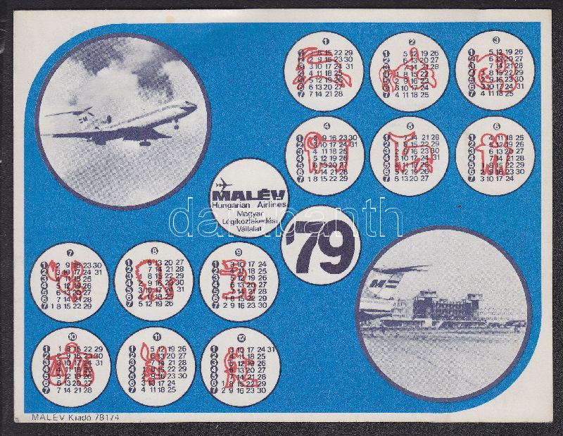 1979 Malév matrica-naptár https://www.darabanth.com/hu/145-Gyorsarveres/145.0/Festmeny-mutargy-papirregiseg-egyeb/Reklam~206/1979-Malev-matrica-naptar~II434126
