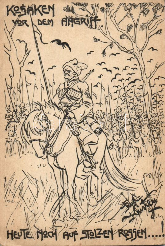 Cossack military, WWI propaganda s: Rudi Kristen (EK) https://www.darabanth.com/hu/145-Gyorsarveres/145.0/Kepeslapok/Katonai~500063/Cossack-military-WWI-propaganda-s-Rudi-Kristen-EK~II434529