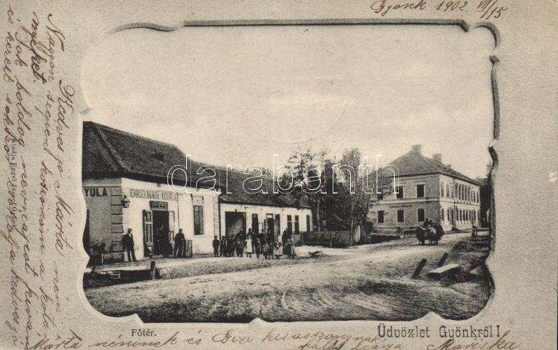 Gyönk Főtér, Engelmann Gyula üzlete és vendégfogadó https://www.darabanth.com/hu/145-Gyorsarveres/145.0/Kepeslapok/Magyarorszag~500006/Gyonk-Foter-Engelmann-Gyula-uzlete-es-vendegfogado~II434867