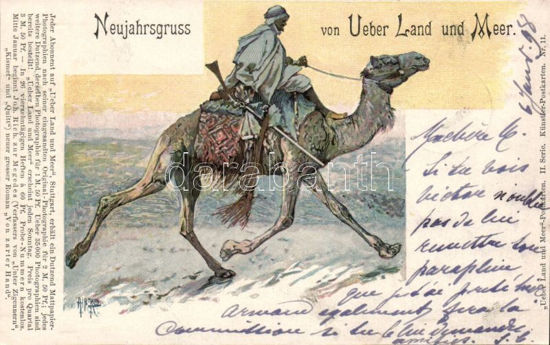 1898 Ueber Land und Meer camel, New Year (cut) https://www.darabanth.com/hu/145-Gyorsarveres/145.0/Kepeslapok/Muvesz~500090/1898-Ueber-Land-und-Meer-camel-New-Year-cut~II434439