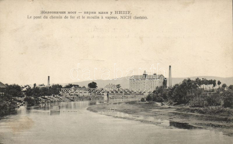 Nis railway bridge and steam mill https://www.darabanth.com/hu/145-Gyorsarveres/145.0/Kepeslapok/Szerbia~500042/Nis-railway-bridge-and-steam-mill~II433673