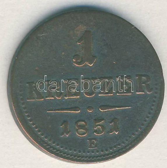 Ausztria/magyar verdejel 1851E 1Kr T:2,2- https://www.darabanth.com/hu/145-Gyorsarveres/145.0/Numizmatika/Magyar-fem-es-ezustpenzek~500099/Ausztriamagyar-verdejel-1851E-1Kr-T2-2-~II432541